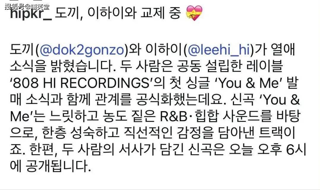 就在刚刚,韩国顶流说唱歌手DOK2突然公开恋情,正式官宣了他和歌手李夏怡(李遐怡)的恋爱关系。