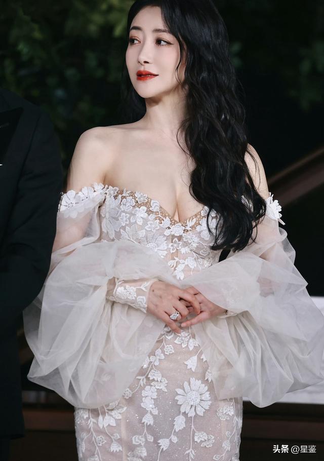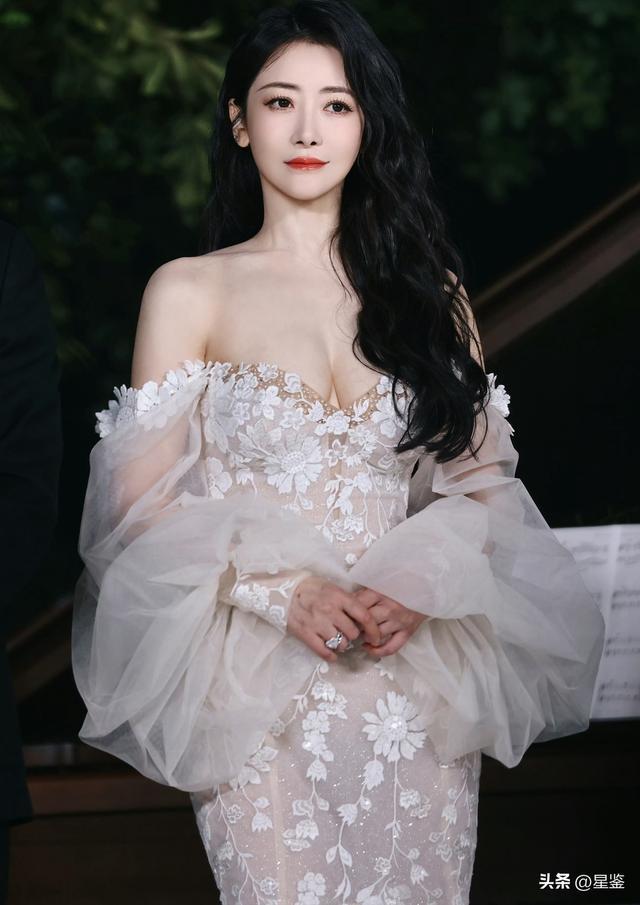 陈紫函这组造型真的太戳人了。一身裸色底的白纱长裙,没有堆砌的华丽钻饰,却把温柔与性感平衡得恰到好处。一字肩的设计刚好露出肩颈线条,搭配蓬松的薄纱袖,弱化了手臂的线条感,又自带朦胧的氛围感。裙身上的立体花朵刺绣顺着版型蔓延,像把春日的月光揉进了布料里,自带细碎的闪光感。